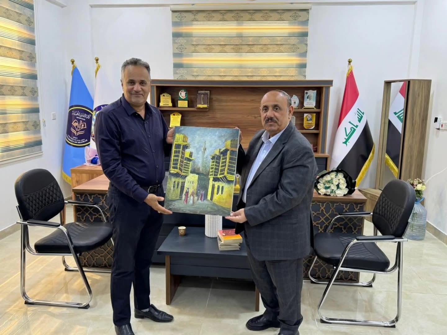 وخلال اللقاء ، قدّم الوفد الزائر مجموعة من الإصدارات في مجال الفن التشكيلي من تأليف الأستاذ علي عبد الكريم ، فضلاً عن مجموعة من اللوحات الفنية والصور الفوتوغرافية التي تعبّر عن تجارب فنية متميزة تعكس روح الإبداع المحلي في محافظة ذي قار .