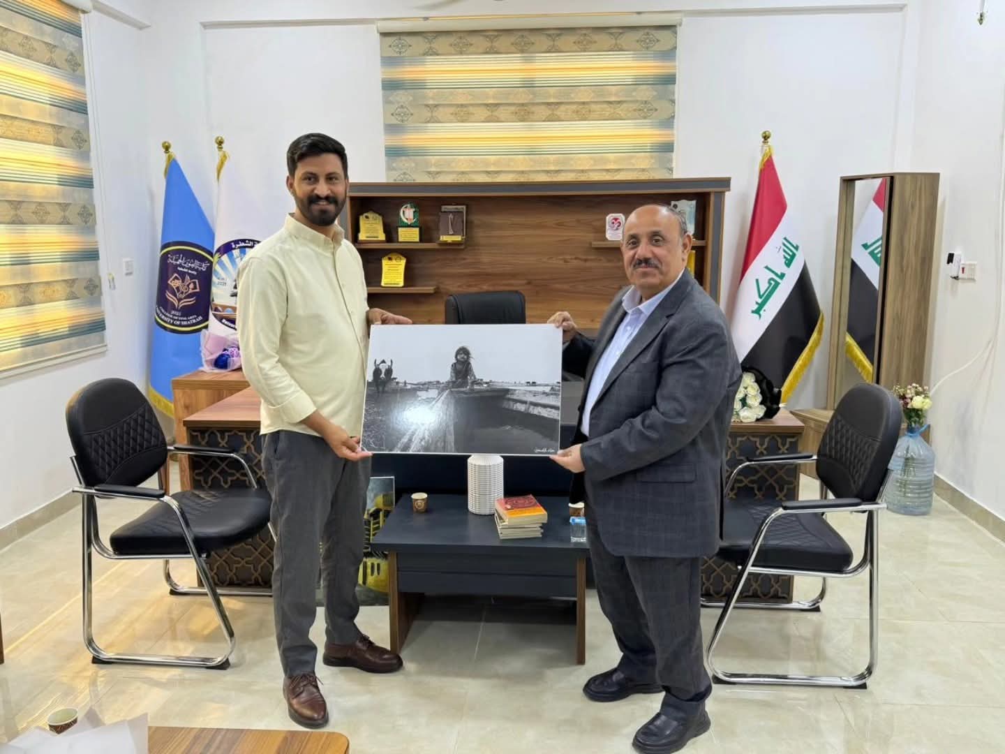 إستقبل عميد كلية الفنون الجميلة الدكتور ياسر البراك ، في مكتبه يوم الأربعاء 8 تشرين الأول 2025 وفد مركز الرواق للفنون برئاسة الأستاذ علي عبد الهادي والوفد المرافق له ، وبحضور الأستاذ علي عبد الكريم مدير قصر الثقافة والفنون في ذي قار / وزارة الثقافة .