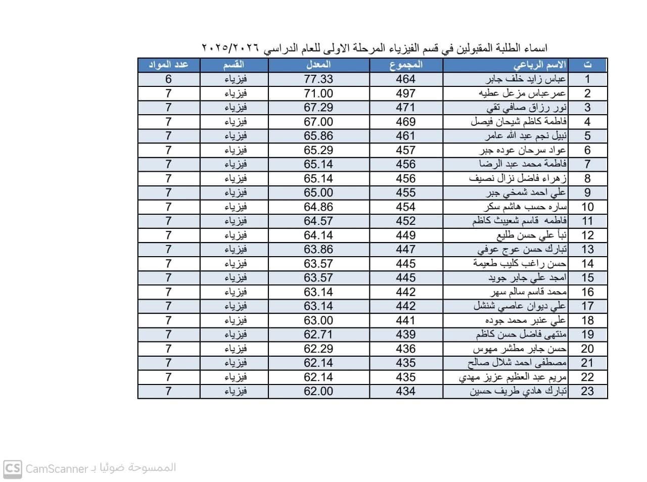 تُعلِن عمادة كلية التربية – الدواية / جامعة الشطرة عن إعلان أسماء الطلبة المقبولين في الدراسة المسائية للمرحلة الأولى للعام الدراسي 2025–2026 لقسمي اللغة الإنكليزية والفيزياء.