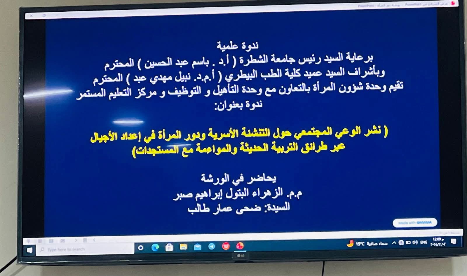 “نشر الوعي المجتمعي حول التنشئة الأسرية ودور المرأة في إعداد الأجيال عبر طرائق التربية الحديثة والموائمة مع المستجدات”.