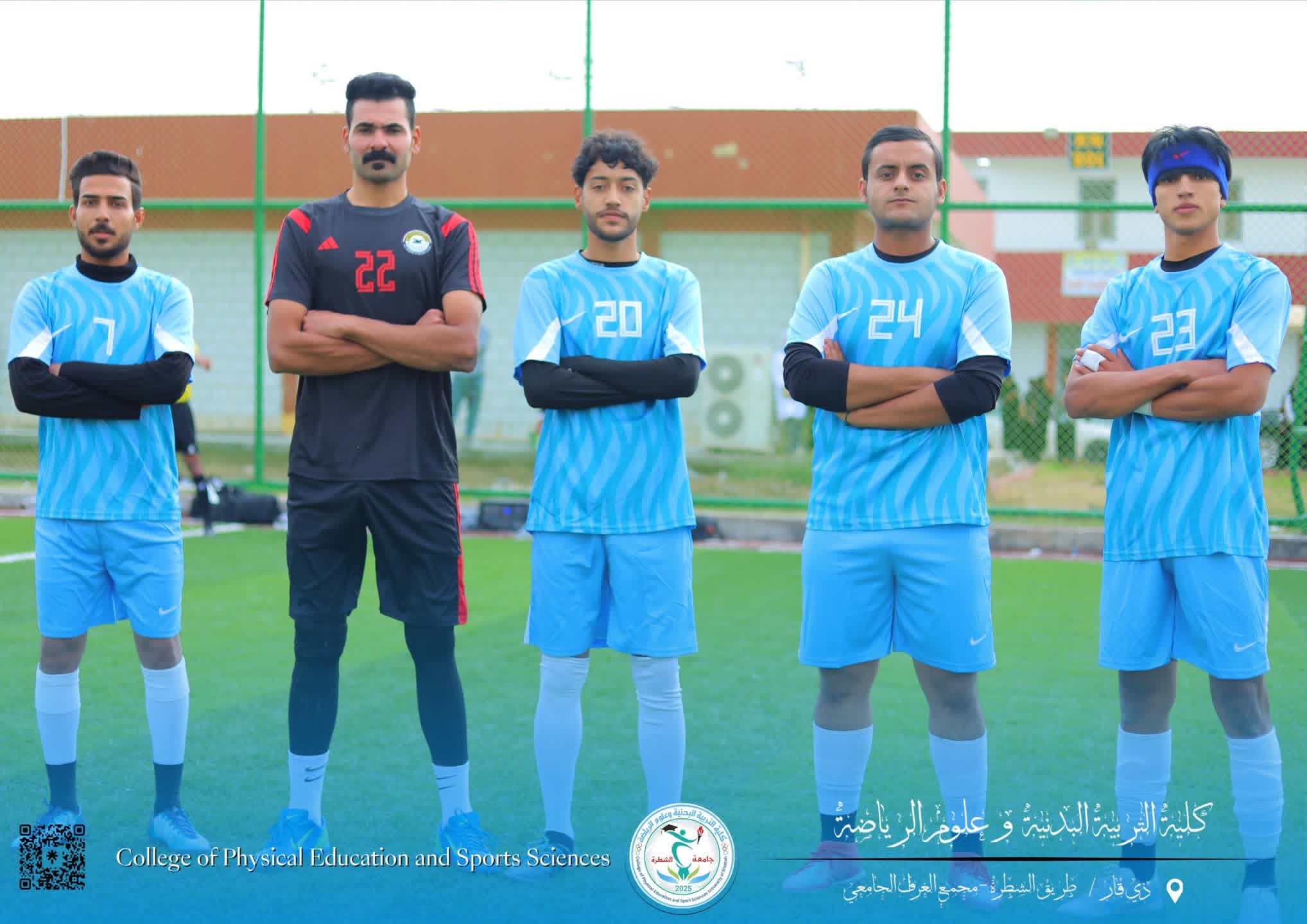 تتويج فريق كلية التربية البدنية وعلوم الرياضة بالمركز الأول في بطولة خماسي كرة القدم في جامعة