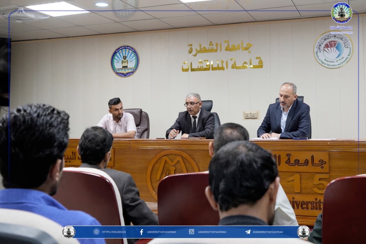 برعاية الأستاذ الدكتور باسم عبد الحسين جار الله رئيس جامعة الشطرة المحترم، ووفقًا لمقتضيات المصلحة العامة، نظم قسم التسجيل وشؤون الطلبة في الجامعة يوم الثلاثاء 14 تشرين الأول 2025، ورشة عمل بعنوان "تعليمات وضوابط القبول في الدراسة المسائية"، على قاعة المناقشات في الجامعة، بحضور السادة معاوني العمداء ومسؤولي شعب التسجيل وشؤون الطلبة في الكليات.