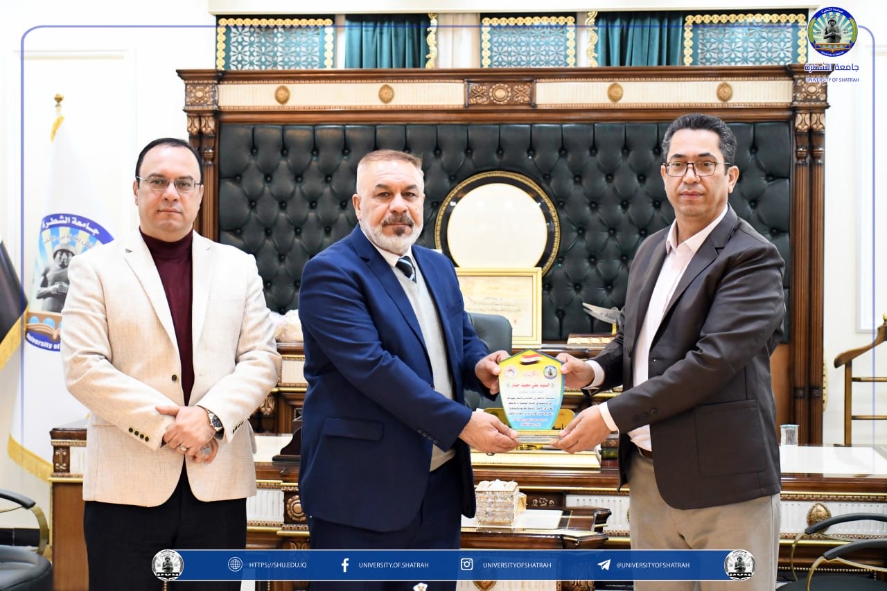 كرّم السيد رئيس جامعة الأستاذ الدكتور باسم عبد الحسين جار الله المنتسبين م.م وفاء رشيج مگطوف و السيد علي مجيد جبار من كلية الطب البيطري اللذين أُحيلا إلى التقاعد بمنحهما مكافأة رئاسة الوزراء الخاصة لدعم المتقاعدين ودرع الجامعة تثميناً لجهودهم خلال مدة خدمتهم في الجامعة، بحضور مساعد رئيس الجامعة للشؤون الادارية الاستاذ الدكتور رائد مجيد جبار .