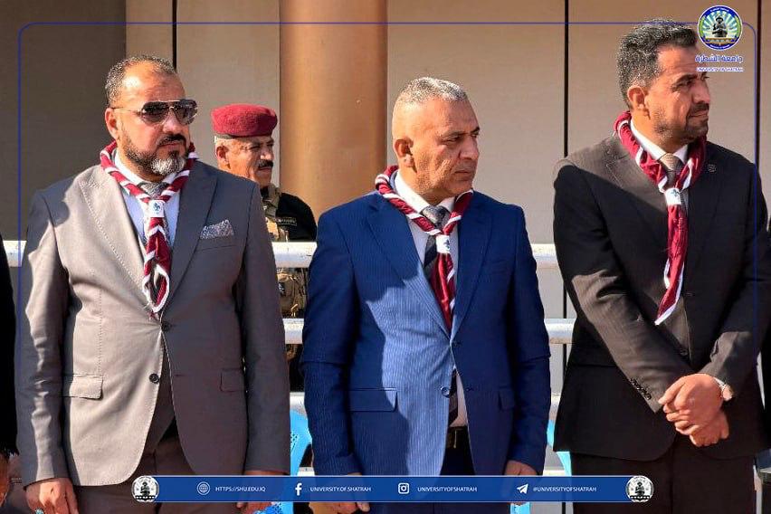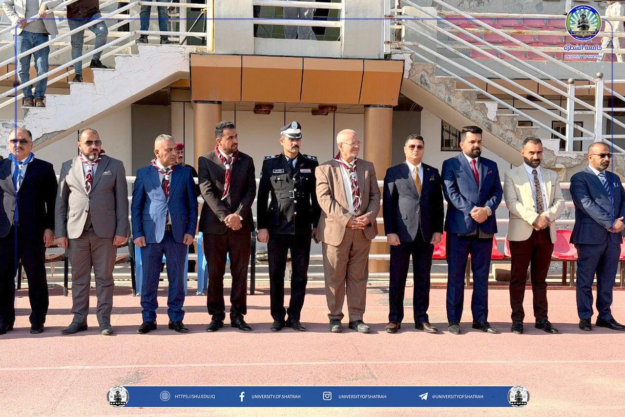 ممثلاً عن السيد رئيس جامعة الشطرة الاستاذ الدكتور باسم عبد الحسين جار الله حضر مساعد رئيس جامعة الشطرة للشؤون العلمية الاستاذ المساعد الدكتور فاضل محسن حمد في فعاليات المسيرة الكشفية لمدارس قسم تربية الشطرة بمناسبة عيد تأسيس الجيش العراقي يوم الاربعاء 7 كانون الثاني 2026 ، التي اقيمت برعاية مدير عام تربية ذي قار م.م علي اسماعيل السبتي و بحضور عدد من الشخصيات الرسمية و الحكومية في القضاء .
